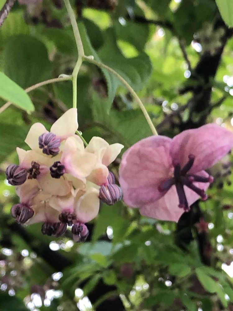 田舎の山で見たアケビの花はもっと濃い紫ですね〜💕👌🤭🤔😆