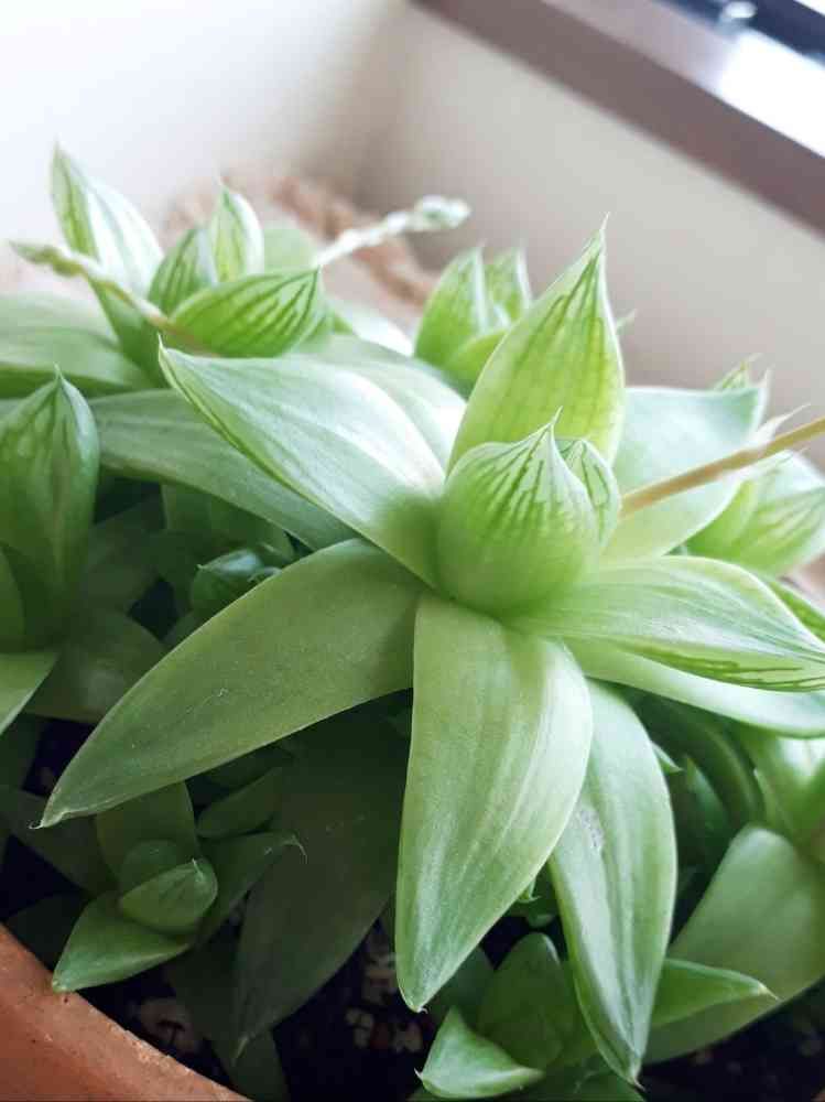 春だし、植え替えも考えているんですが、このハオさんの葉🌱ピンピンしてて、無理に触ると折れてしまうんです💦💦