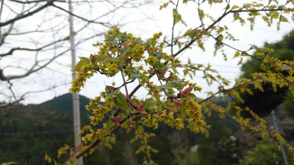 カエデ類の花は小さくて可愛いです。ウリカエデの色は地味ですが、花がまとまって咲くのでよく目立ちます。