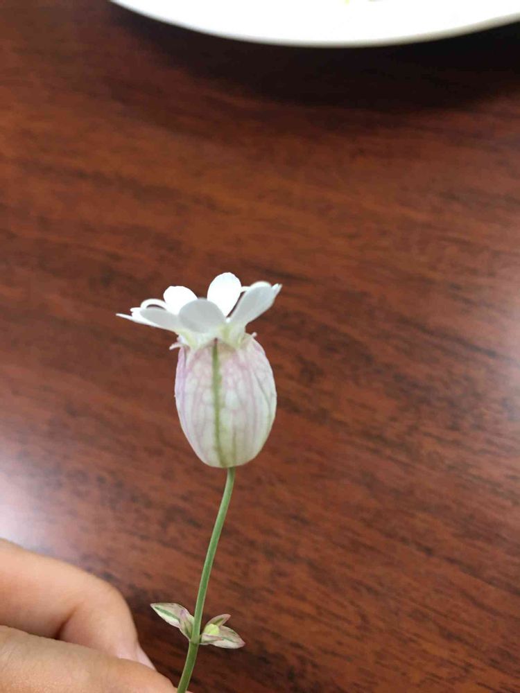 シレネユニフローラっていうんですね。名前も形と同じくおとぎ話に出てきそうな愛らしさ。実家で母がかわいいでしょと庭から摘んできました。