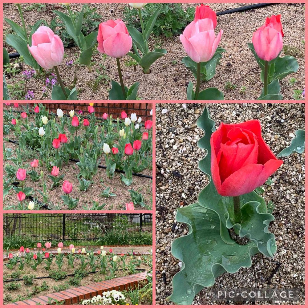 すぐ近くの花壇のチューリップがたくさん咲いています🌷🌷🌷