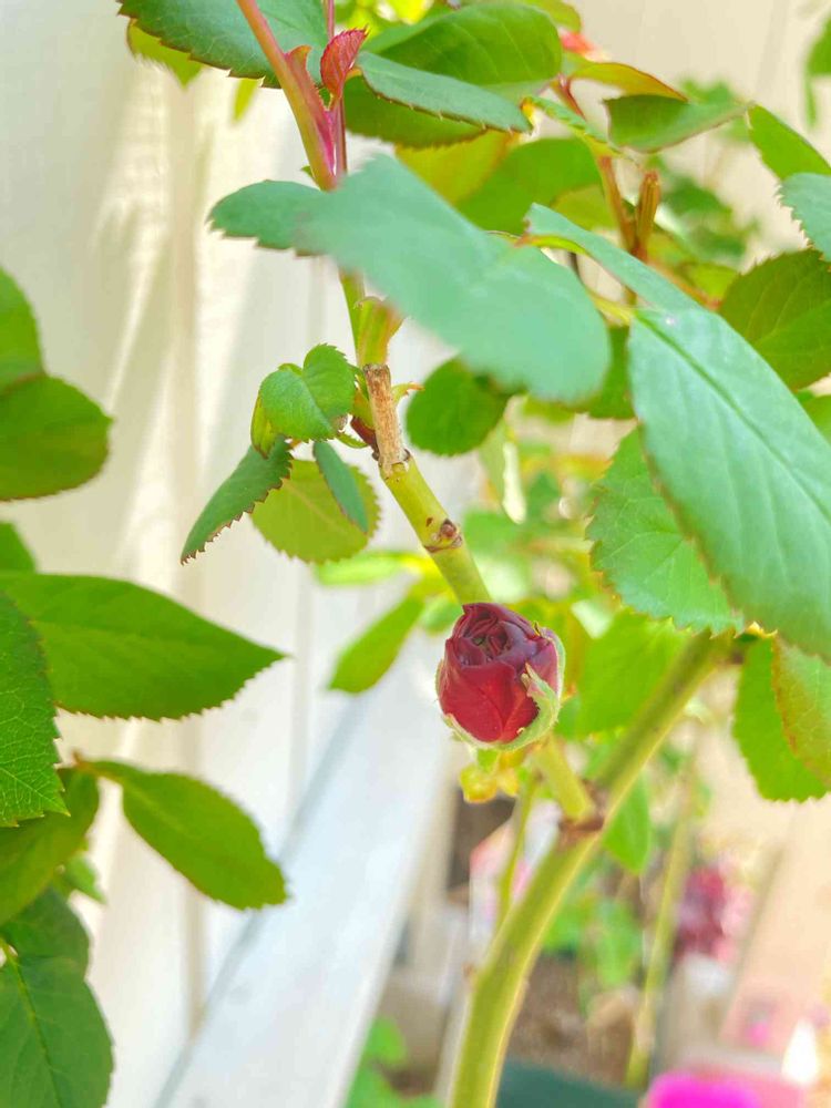 早くもバラの蕾二つ見つけた 暖かくなってきてバラも動き出したくなったのかもしれません 開花にワクワクします