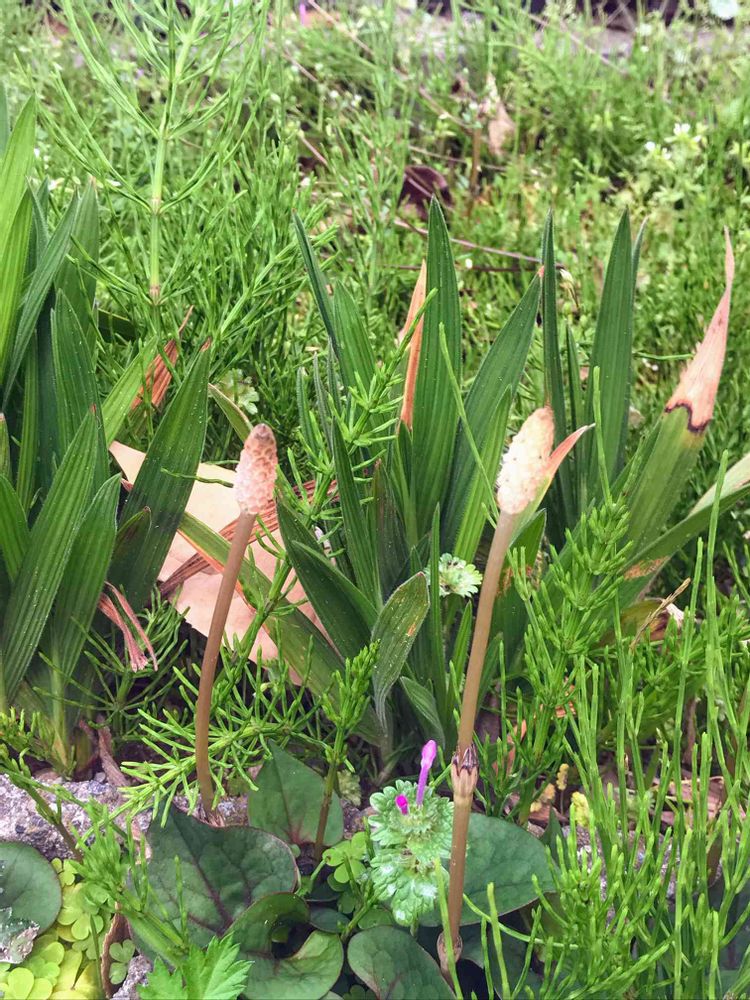 スギナの前に土筆がでます。土筆が終わる頃スギナが群生します。スギナは簡単に抜けないし、非常に強く 他の植物の邪魔をしたり、駐車場のアスファルトを突き抜けて生えてくるので、処理が大変ですわ。