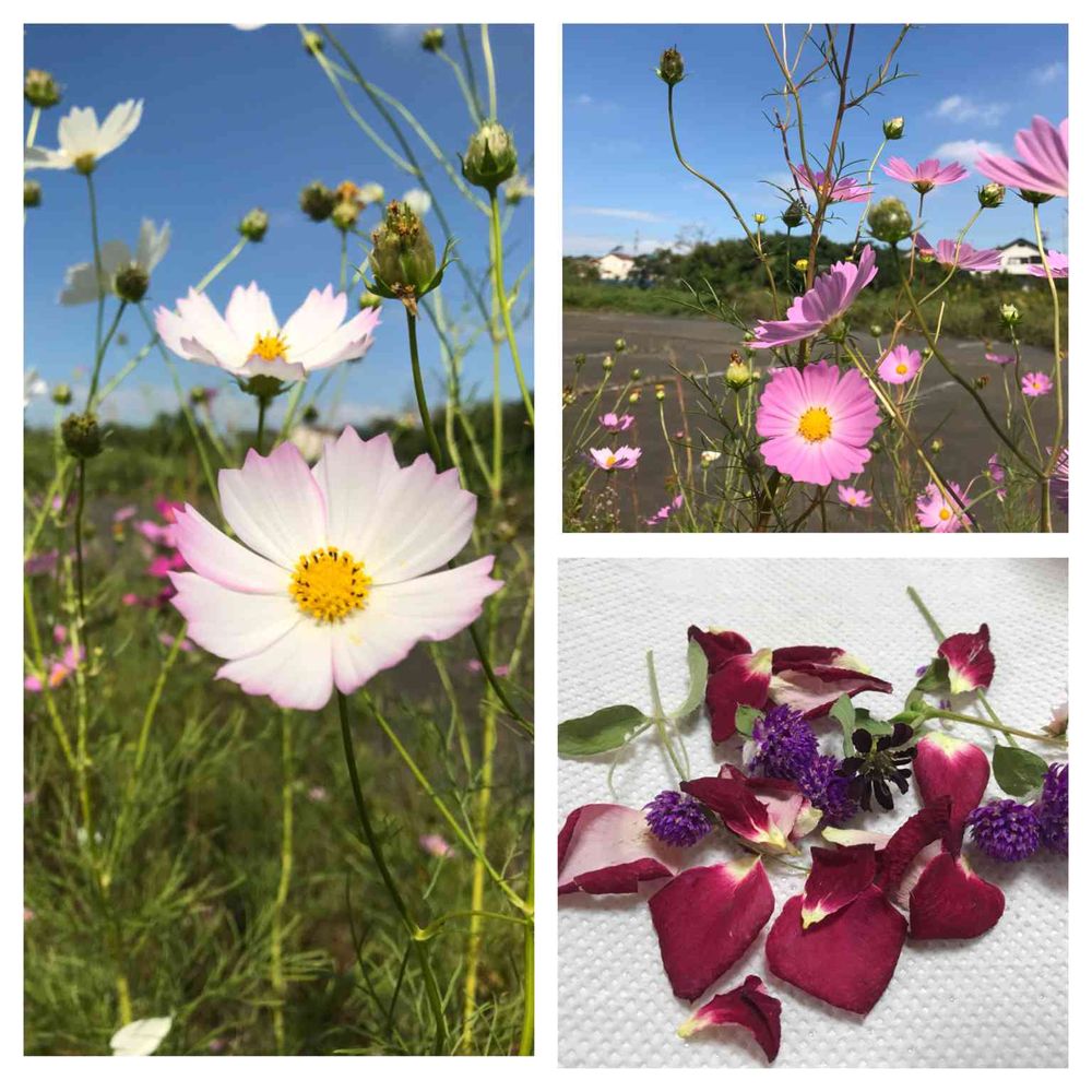 秋の空にコスモスが揺れてる✨ドライの花びら、生の花びらみたい‼️何に使おうか迷っちゃうね💕