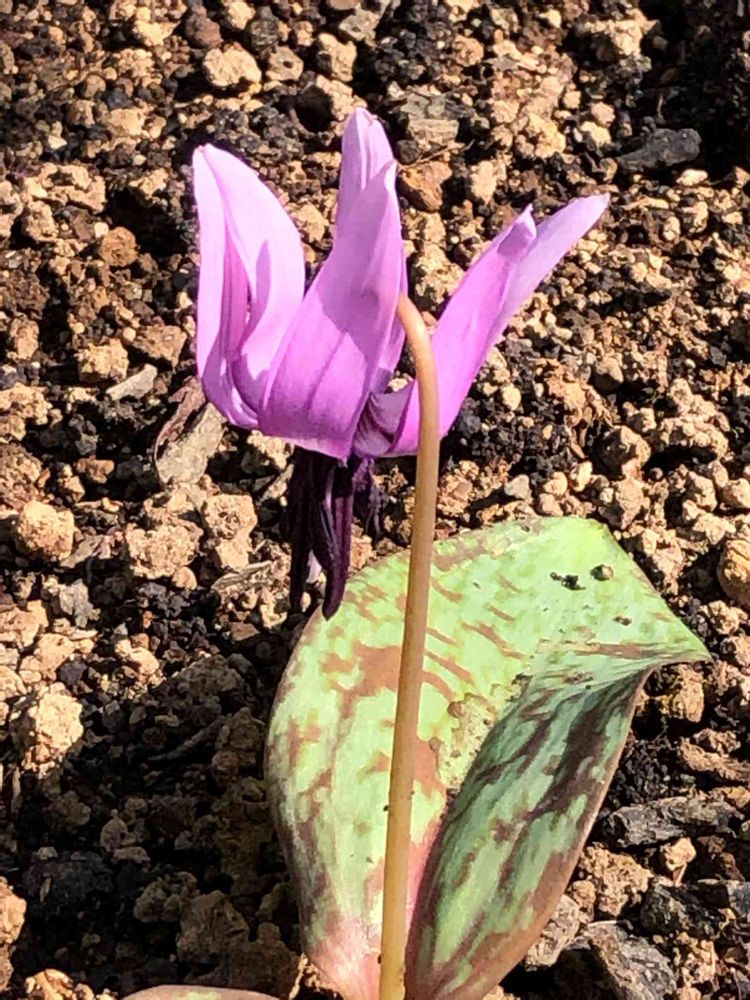 先日蕾付きカタクリを買って大きな木の下に地植えしました✌️無事開花🎶🎶🎶