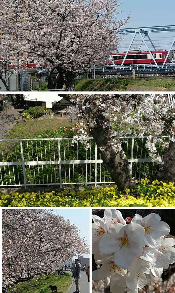 多摩川の土手は 桜並木が 点在して花見散歩は かなりの人出になります