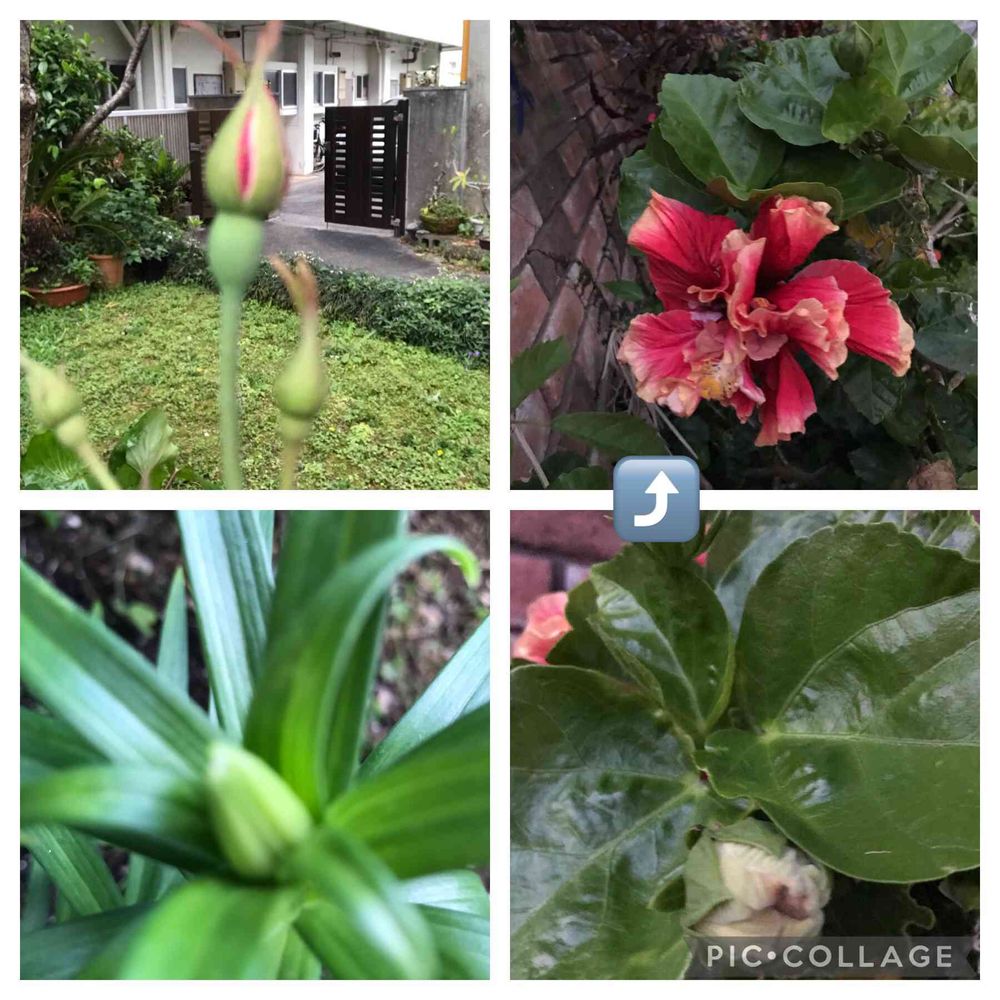↘️手前はハイビスカス🌺蕾 花びらの裏は白い