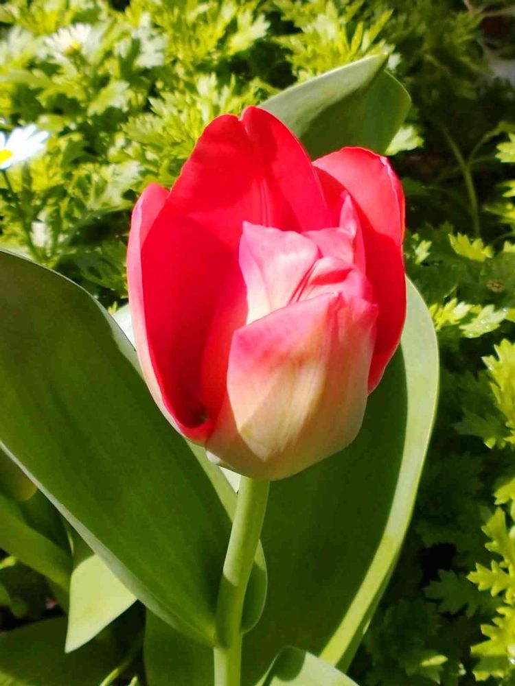 日の光を浴びて眩しい赤です❤️🌷❤️