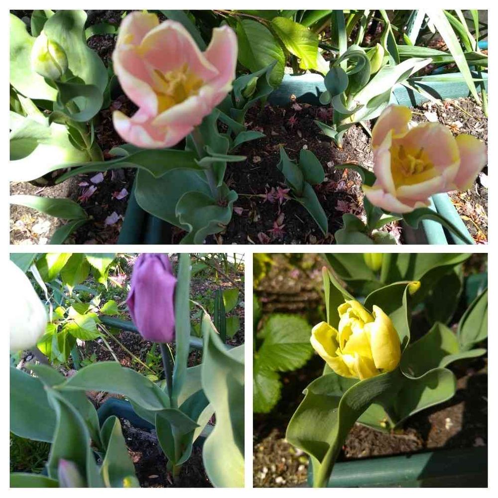 風がきつく吹いています。チューリップ咲いてきています🌷