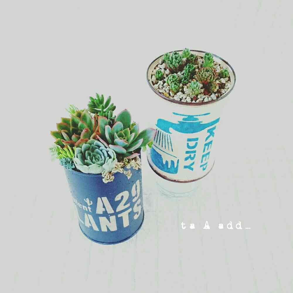 オールホワイトのバックにリメ缶の多肉ちゃんが映えるね〜(´∀`,,人)♥*.