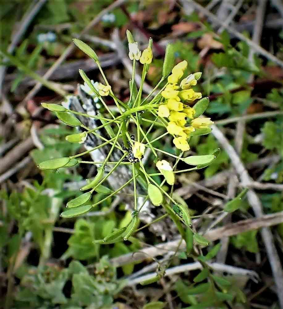 黄色の花でナズナの仲間ですが、果実がバチ型ではなく、こん棒型となります😁