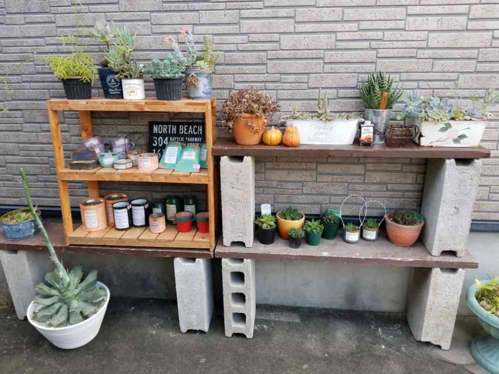 ほとんど処分されるという事だったので、棚やブロックや板材も安くで分けて頂き、帰ってきて速攻で多肉棚を組み立てました🎶