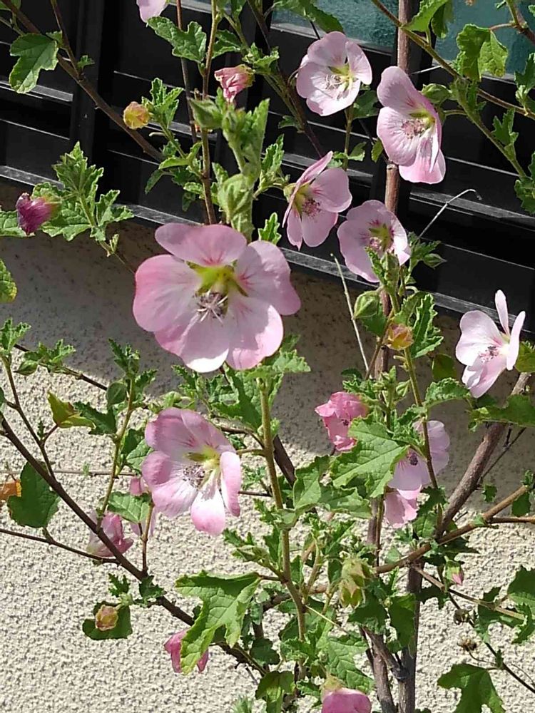 去年、姉から このお花の名前を教えてとスマホで写真を送られて来ました。このコーナーで皆さんにお聞きしたら 桜あおい との事! 姉の花友さんの家に咲いてたそうです。