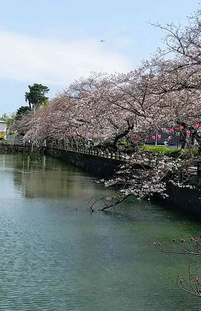 昨日の小田原城址公園でお堀側から見た桜並木です
