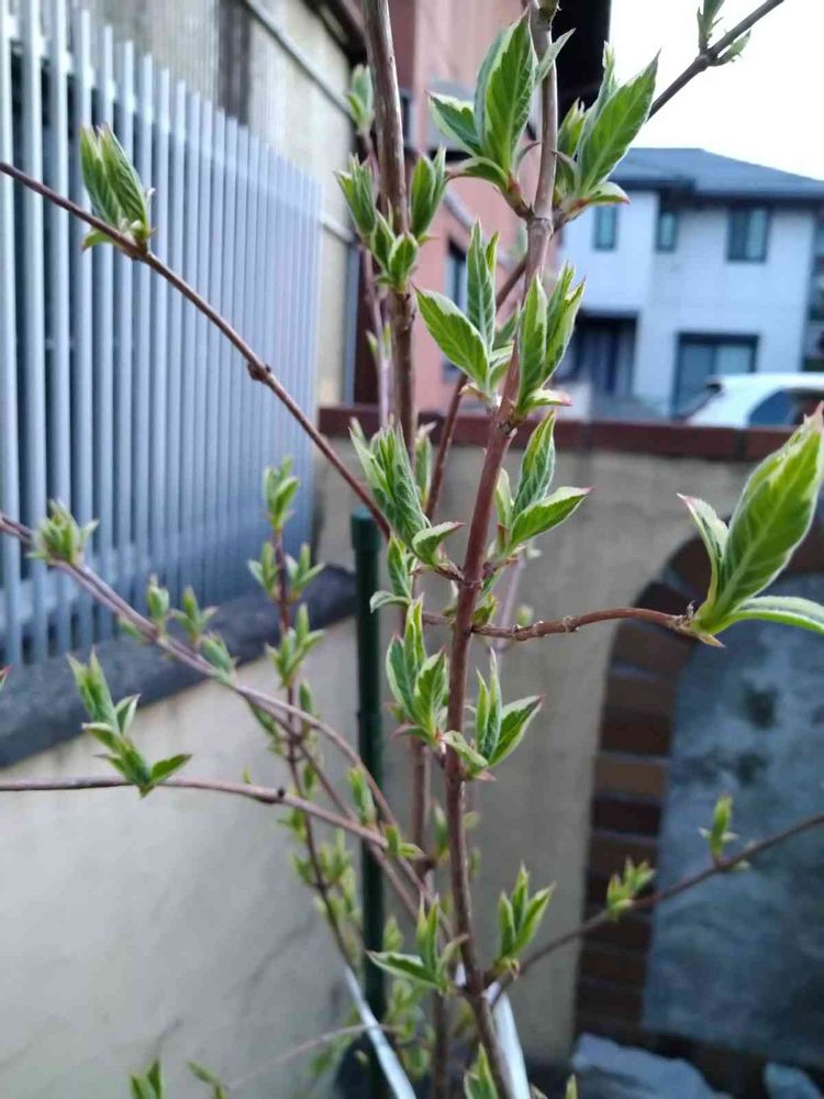 昨年実家からお嫁に来てくれた斑入りオオベニウツギ。