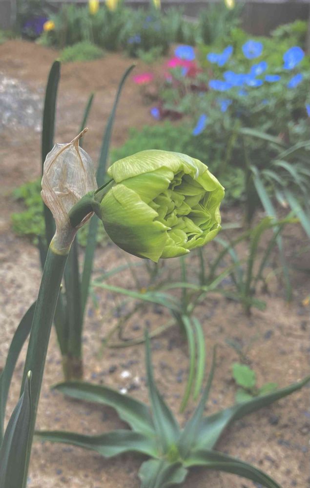 2つ球根買ってひとつはお花出ません。この子もなかなか開かない子なのです…まずは咲いてくれる事を願いますよ✨💚🙈💦✨
