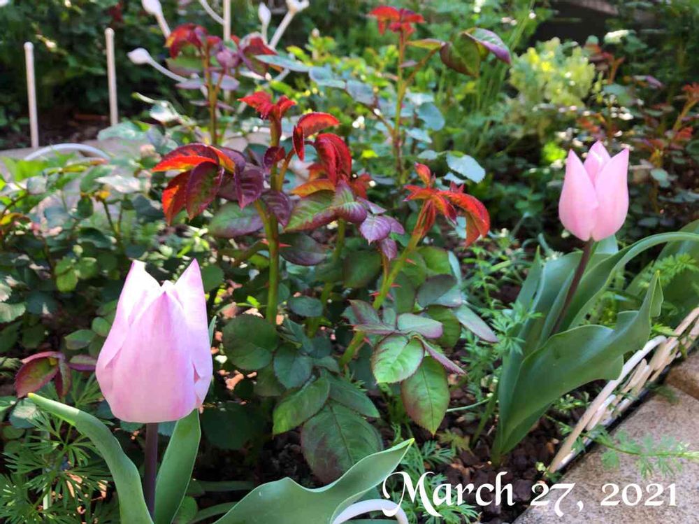小さな庭,チューリップ,バラ ヒーリングの投稿画像