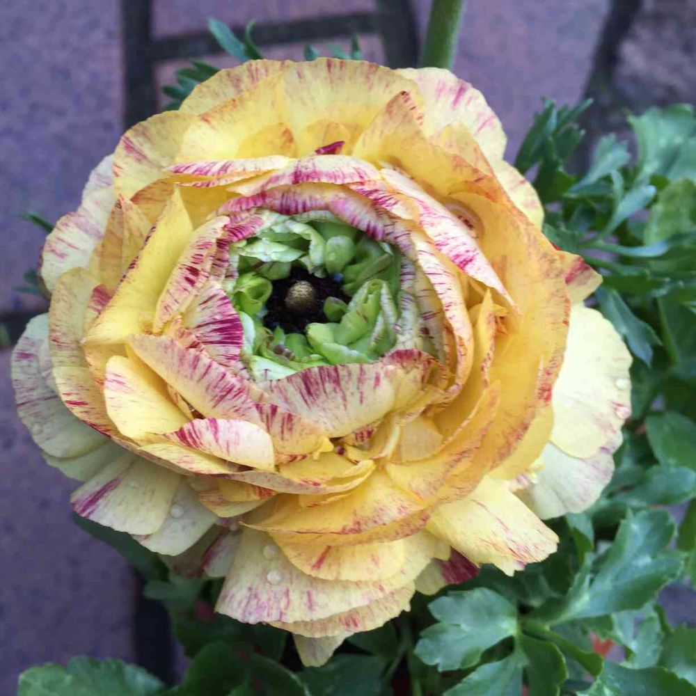 チョット変わったラナンキュラス、見つけました〜😊💕大輪ですが、色目が可愛いので即お迎えしましたよ✨中心のグリーンが大好き💞寄せ植えにします😊