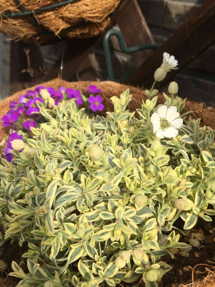 同じく乾燥が好きな紫色が綺麗なオーブリエチアさんとハンギングで