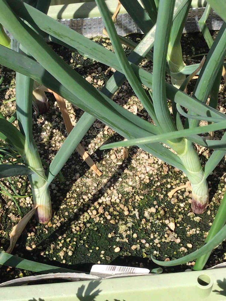 先週からさらに太くなったようなプランター栽培の玉ねぎ🧅東京レッド!地面すぐ上の茎にだいぶ赤みも出てきたかな!