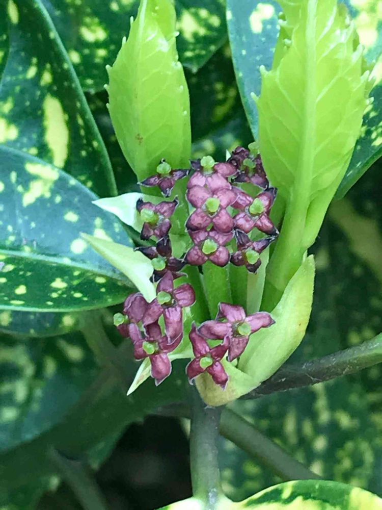 アオキのお花って紫色なんですね~✨実にしか目が行っていなかった😳