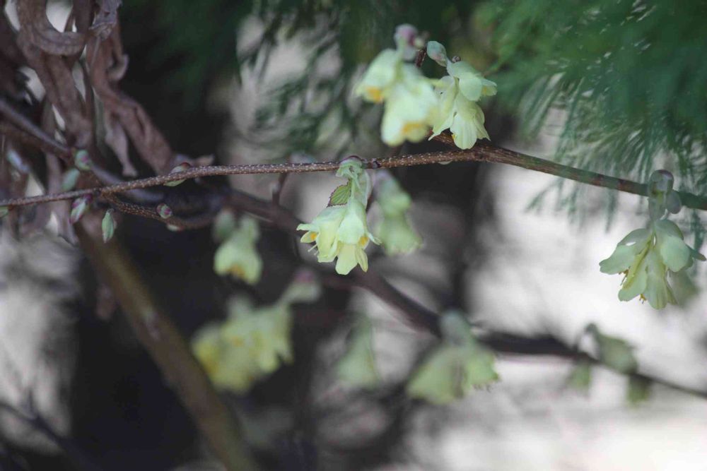コノテガシワの陰で、ひっそりと咲いていたヒュウガミズキ🌼