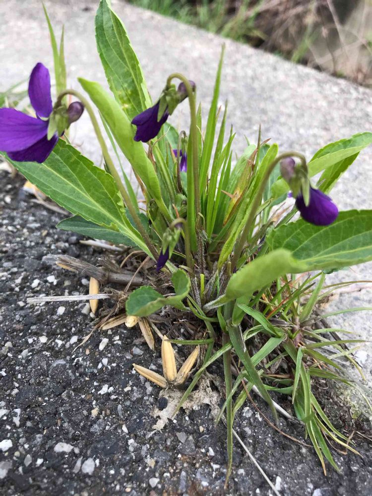 コンクリートの隙間からスミレが顔を出してます。٩(ˊᗜˋ*)و✧*。