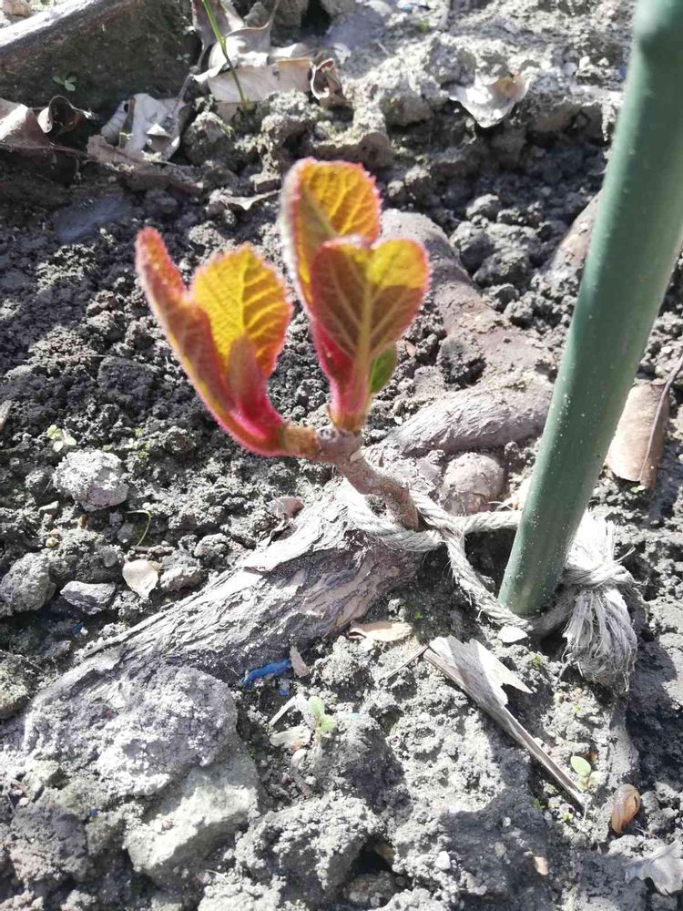 偶然にも自然な取り木ができ、1/19に地植えしたキウイの雌木です。🥝