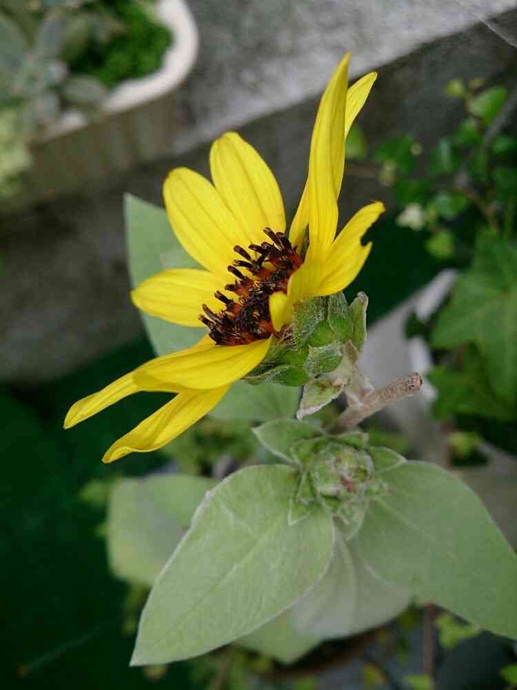 季節が、ズレて夏の終わりがけ…もう秋に入るのに咲いてますが、しかもあっちむいてホイしてます…(;^_^A