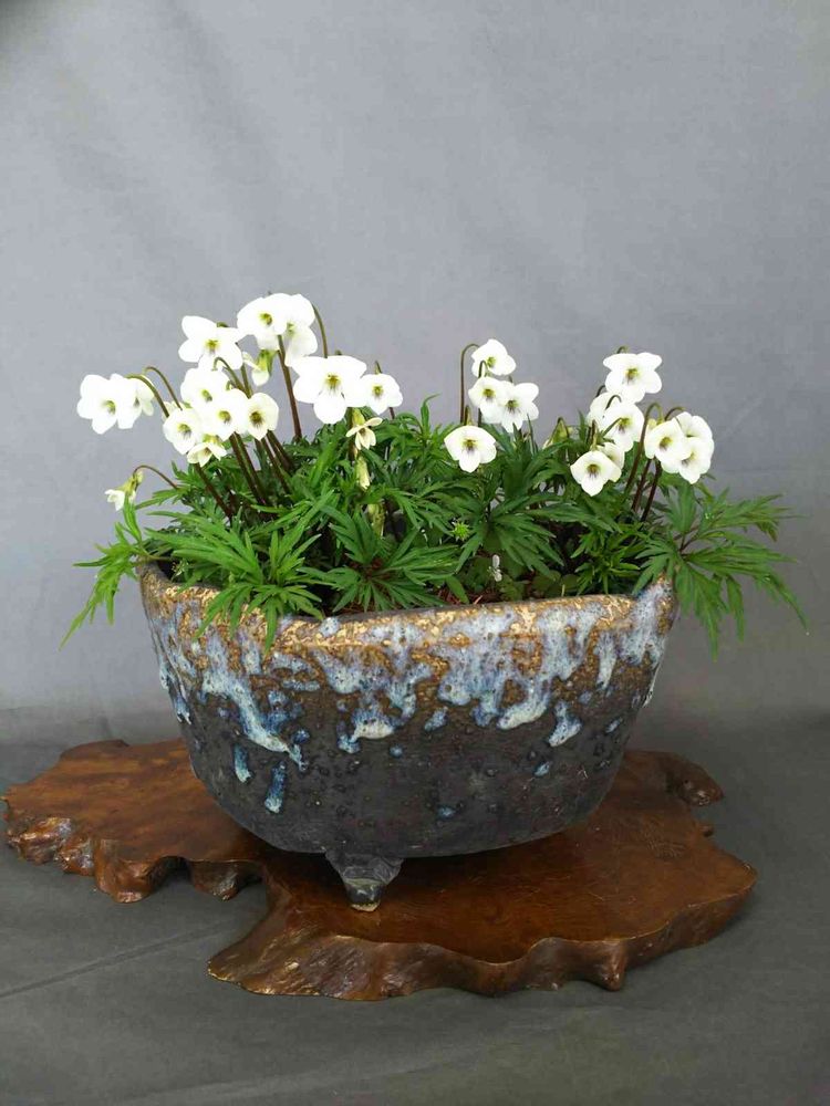 賑やかに見える様に、小さな鉢植えの庭で育てています