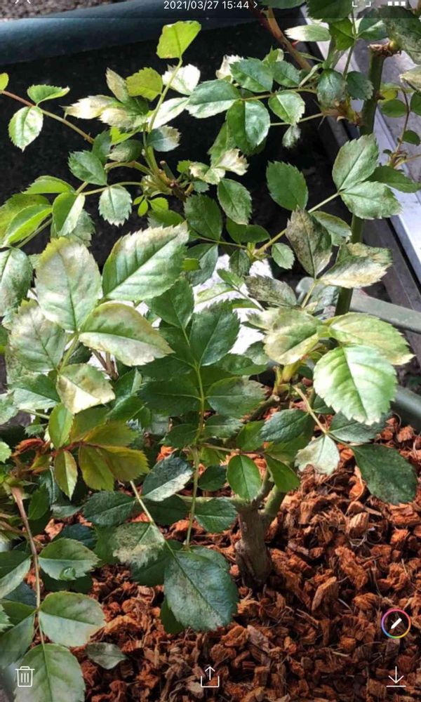 初めて薔薇を買って植えました。ところが1週間して葉がこんな風になって来たのですが、これは何の病気でしょうか?葉を取って薬剤は何を使えば良いでしょうか?復活して欲しいです…