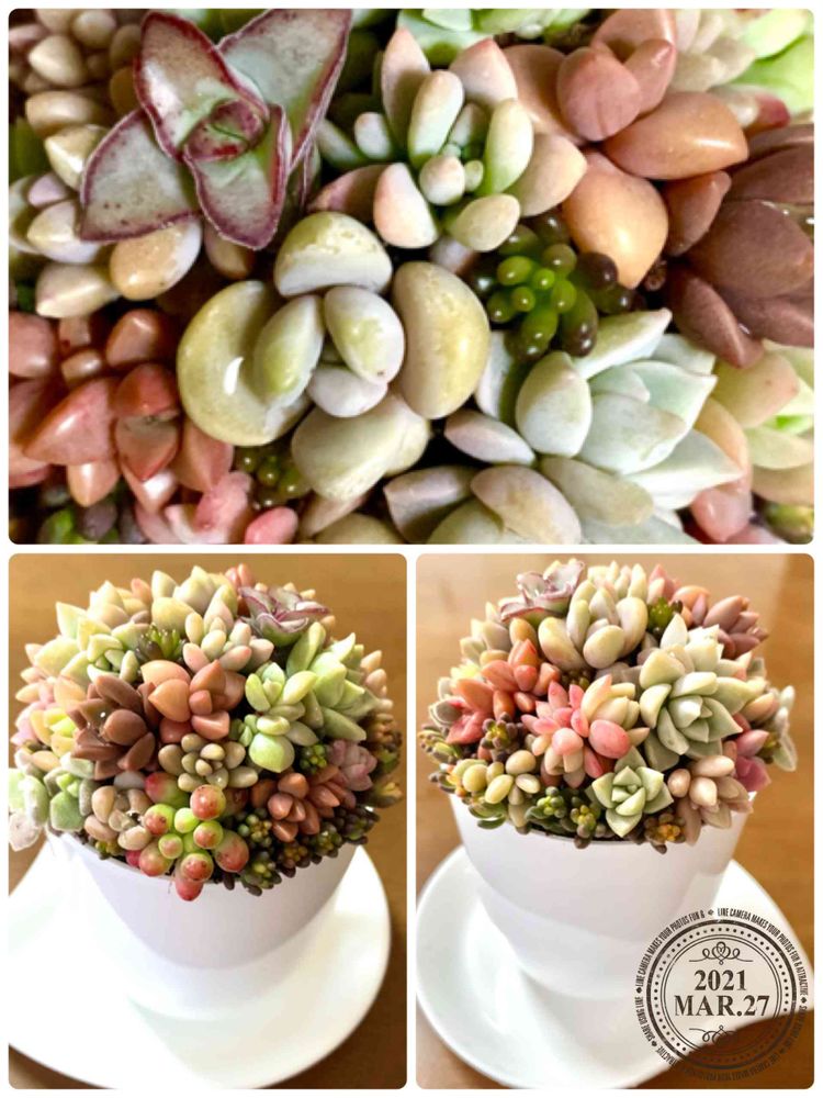 これは相当大変な作業でしたね。これでもか?と言う位多肉さんが入っていますね。こんもりしていて、素敵な寄せ植えです。