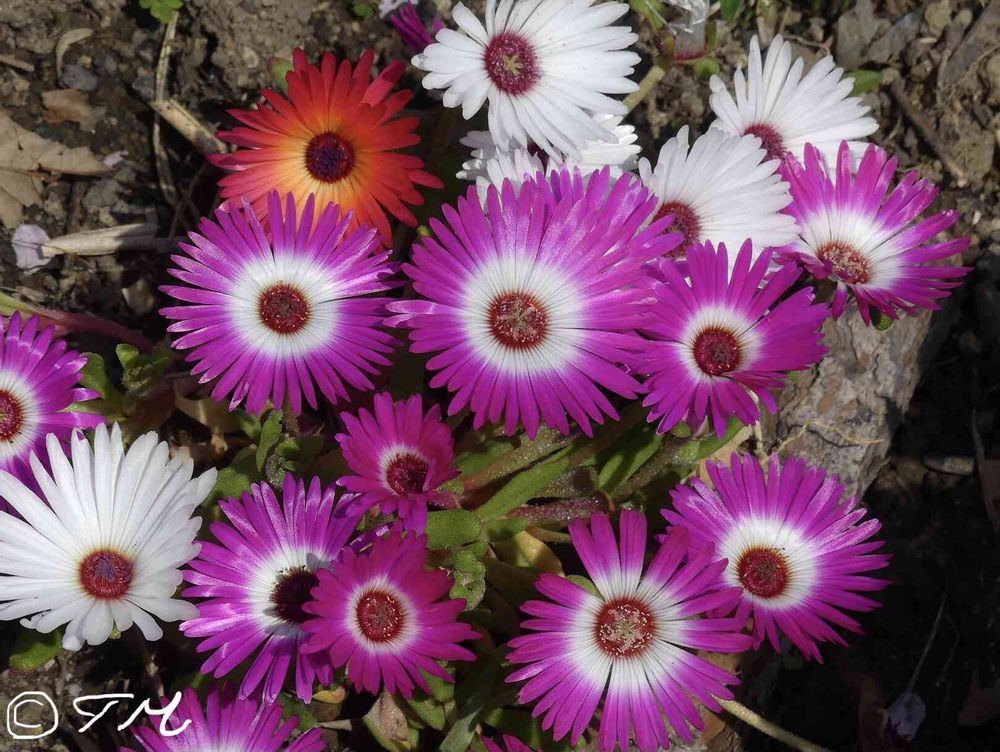 リビングストーンデージーが陽光と共に開花。寒くなるとお休み。