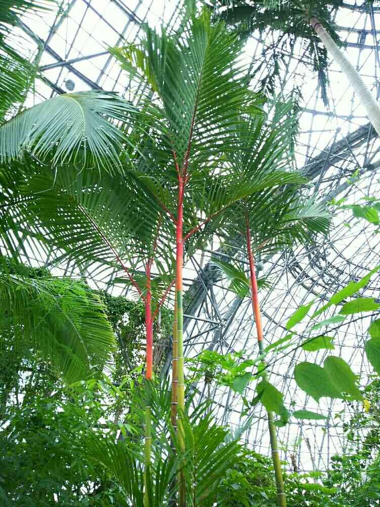 カラフルなヤシ、ショウジョウヤシ(Cyrtostachys renda)です。
