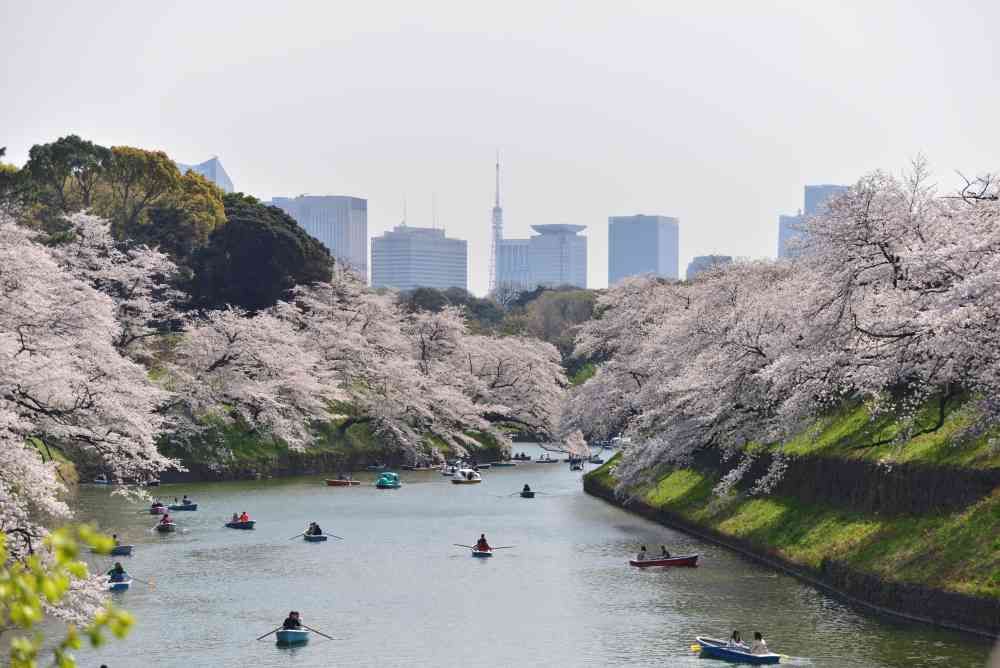 皇居千鳥ヶ淵の風景。奥に東京タワーがあります。