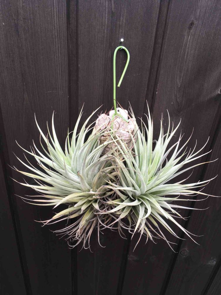 背中合わせに2つ、ガッシリと活着しています。硬い葉っぱで、葉数が多いシルバーグリーンの銀葉種です。サイズ感も大きすぎず、置き場所選ばずにどこにでも飾れるので重宝してます。