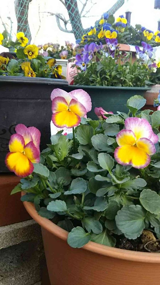 私も、80円で買ったビオラ元気にしてますよー😁 3色どれも個性的な色です💯