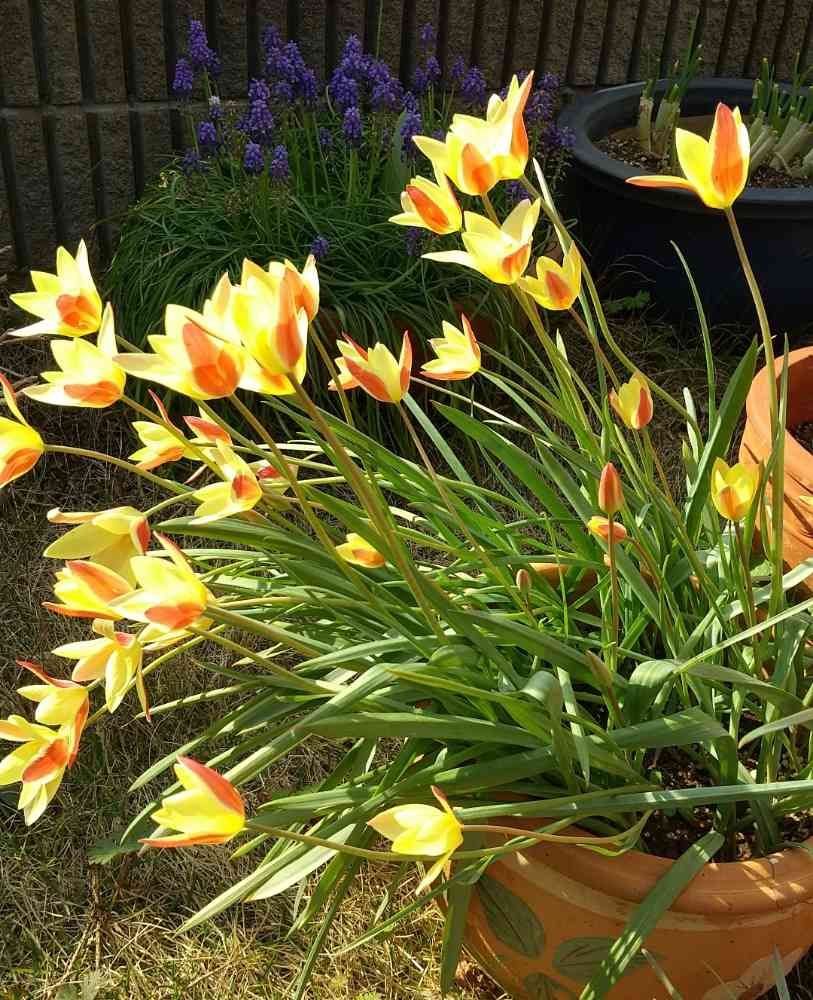 切り花のチューリップはシューとしていますが、植えたチューリップは意外とワイルドで観察しているとおもしろいです