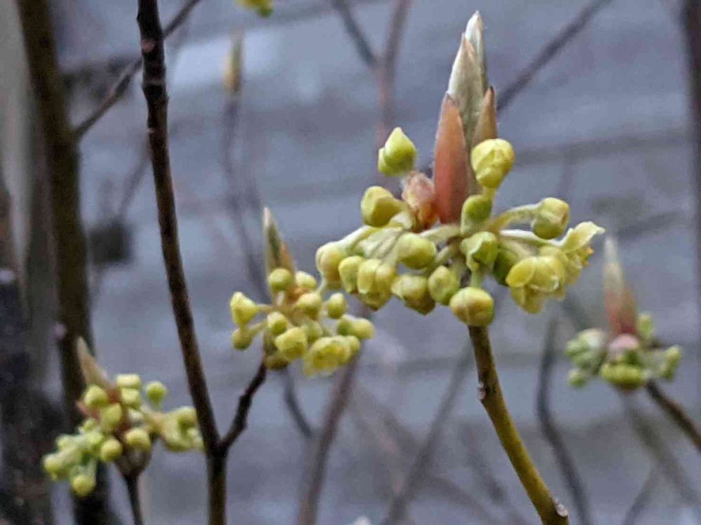 昨日のクロモジの様子です。新葉が大分伸びて、蕾もバラけて来ました。