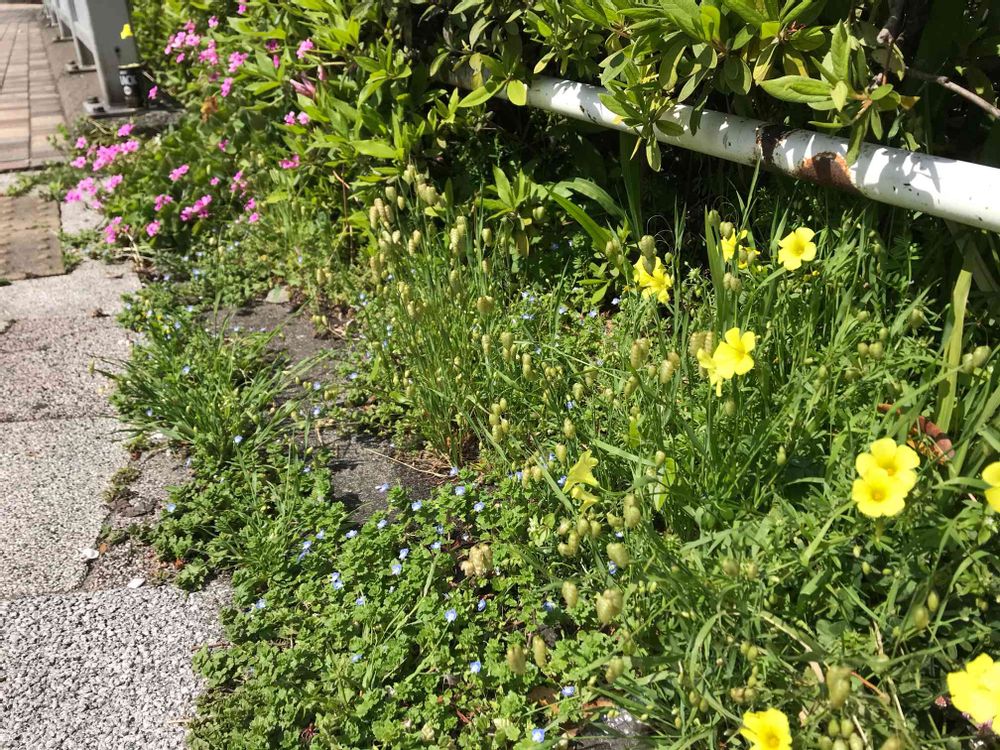 きっと黄色とピンクのオキザリスとオオイヌノフグリ、そして今ブラックベリーさんに名前を教えてもらったコバンソウ。