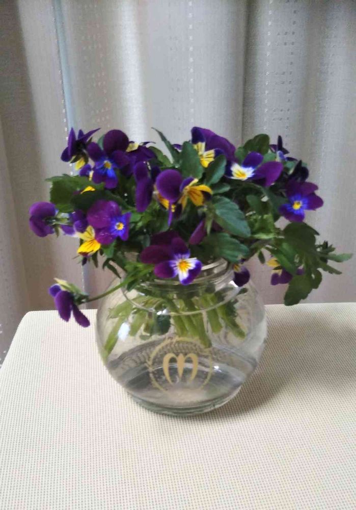 切り戻したビオラを瓶にいけてみました💐