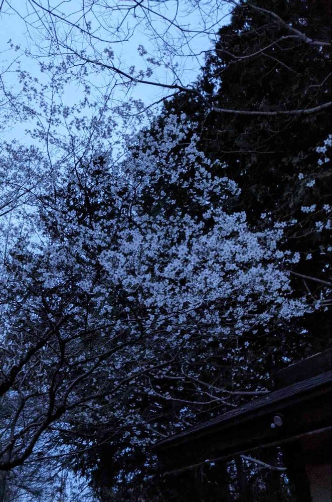 昨日暗くなりかけてから小屋の屋根に枝を伸ばす富士桜を写しました。何枚撮っても写し足りない美しさです。大きく育ってきたので来年はライトアップしたら?…と欲が出て来ます。
