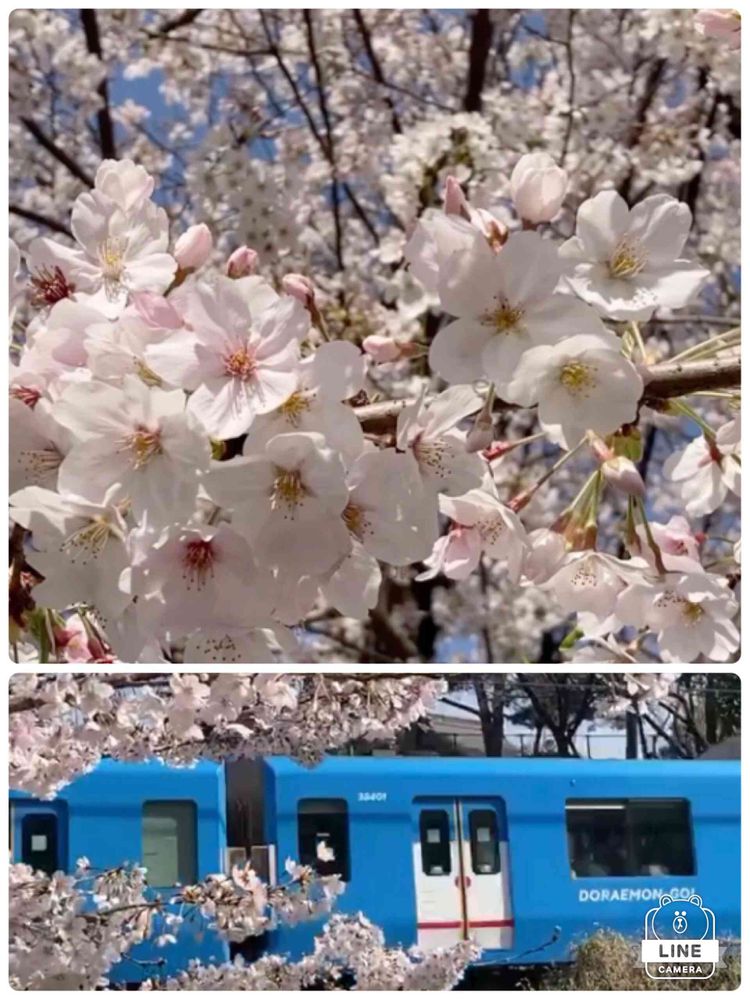 桜とドラえもん電車 素敵ですね😊