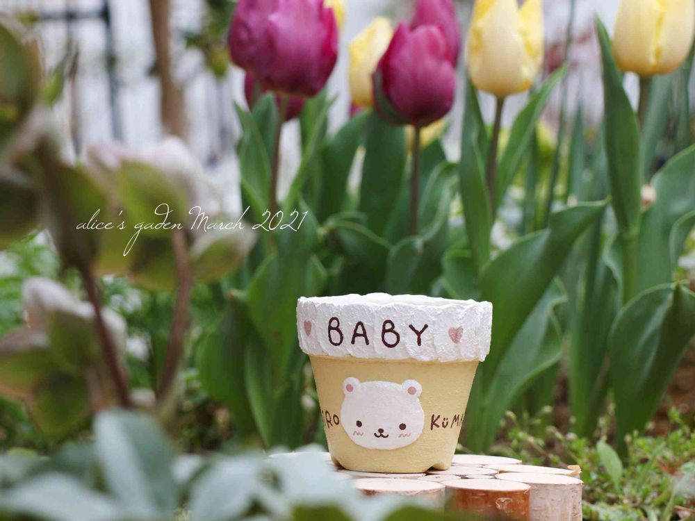 aliceちゃんのお庭とリメ鉢がとてもマッチしてて ほんわかするぅ〜(ˊฮ̴ .̫ ฮ̴ˋू)˚💗✨