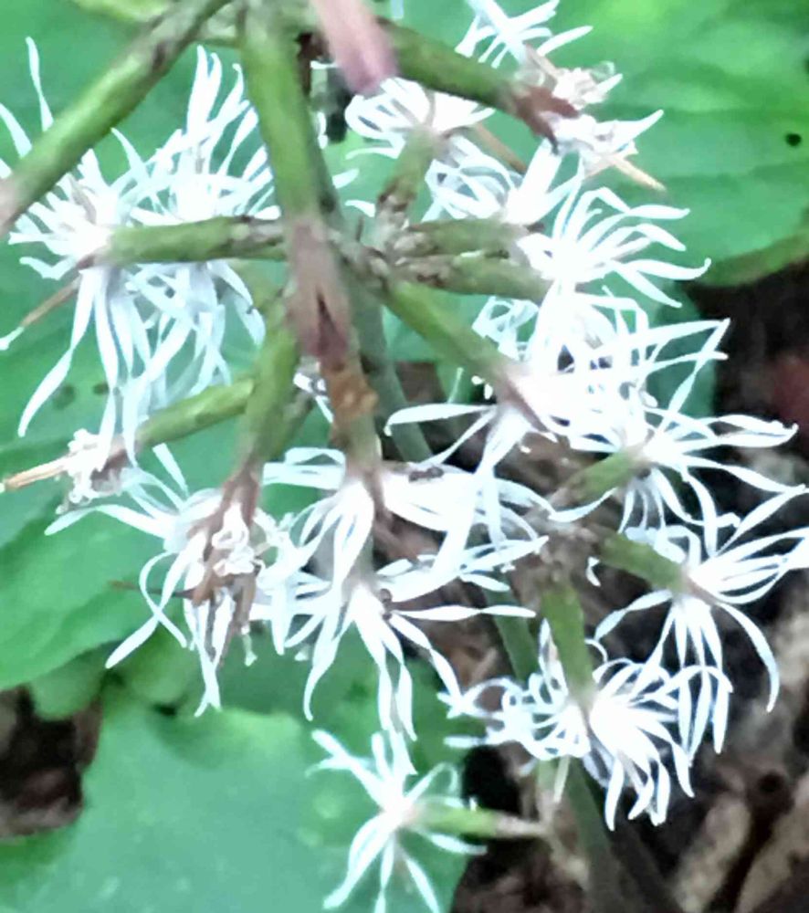 オクモミジハグマ(奥紅葉白熊)。杉林の小暗がりにひっそりとあちこち咲いていた。くせ毛の花びらがおもしろい。線香花火のようだ。ハグマは槍や旗などの飾りにするヤクの尾っぽの毛のことらしい。先人の名付けの知恵に驚く。