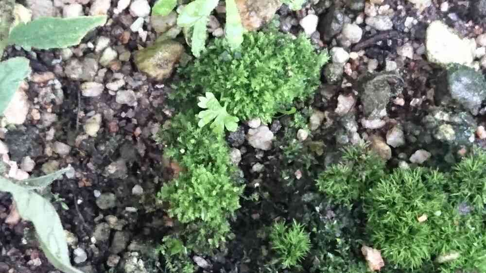 コケの間から何かかわいい葉っぱが生えてきました🌱