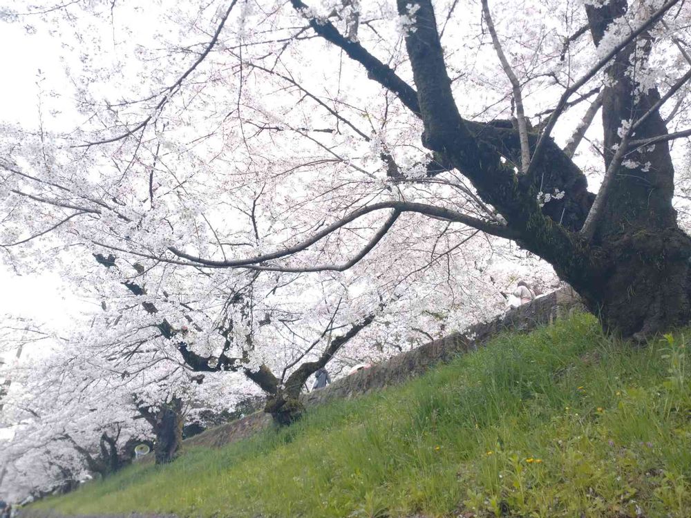 青空の背景の桜も映えますが、曇り空は桜と空が一体化してきれいですね🌸