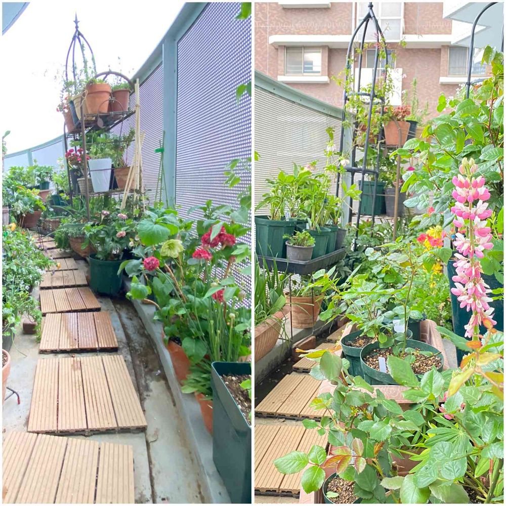 なんとか夏もこの配置で乗り切りたい。薔薇🌹頑張れ〜❣️