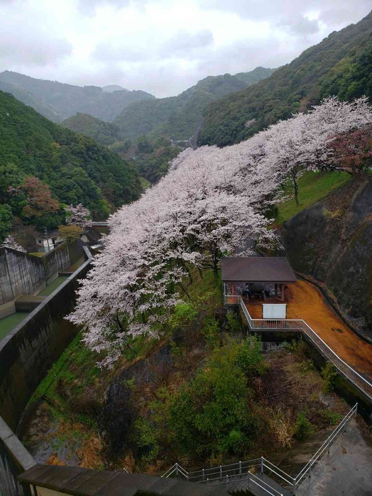 雨の中、みなべ町の結構有名どころ、島ノ瀬ダム~🎵桜が満開ダッタ。