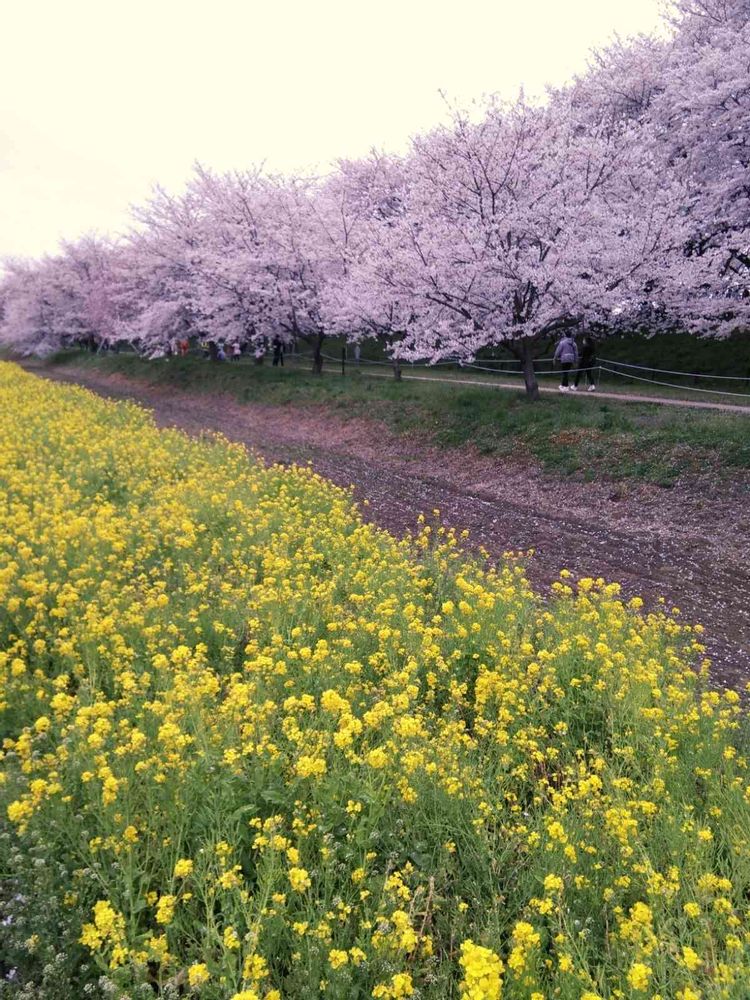 ねこさんさんのお出かけ先,菜の花と桜の投稿画像